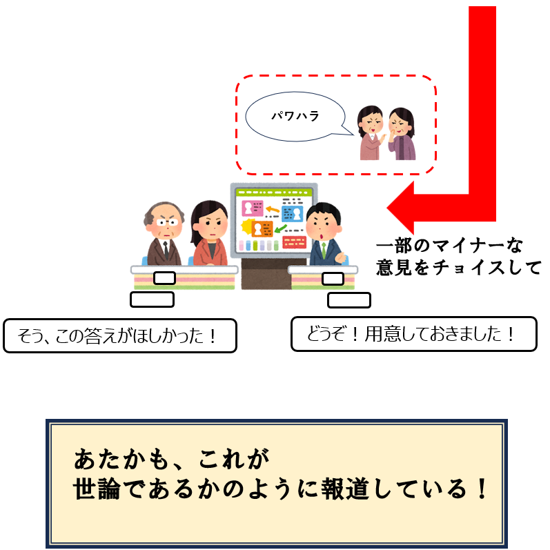 なぜ?多くの国民の声を報道せずに、小さな意見を報道する。オールドメディアは、これを報道の自由というのでしょうか。
