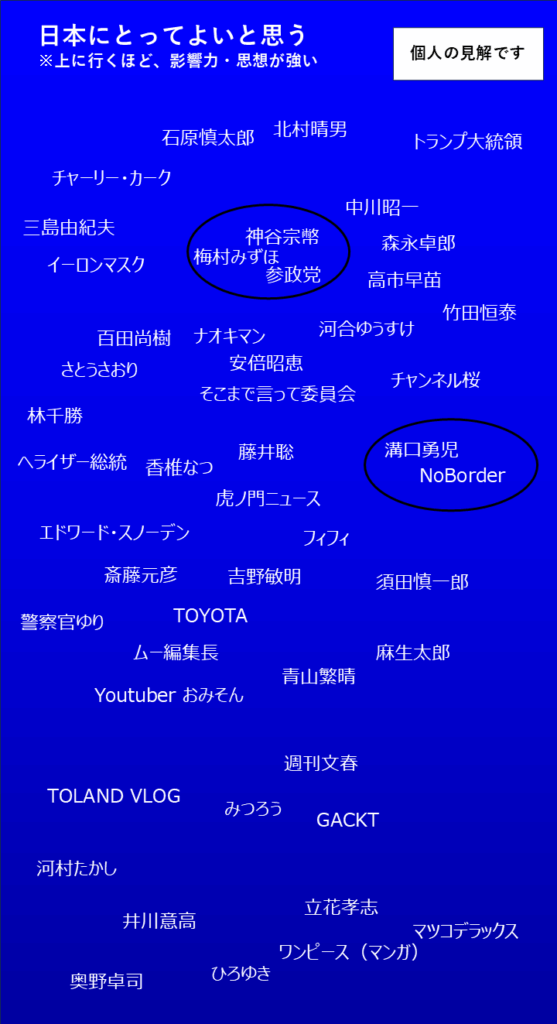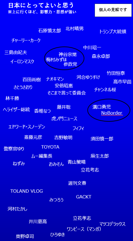 ■青色:NoBorder(YouTubeチャンネル)、溝口勇児氏