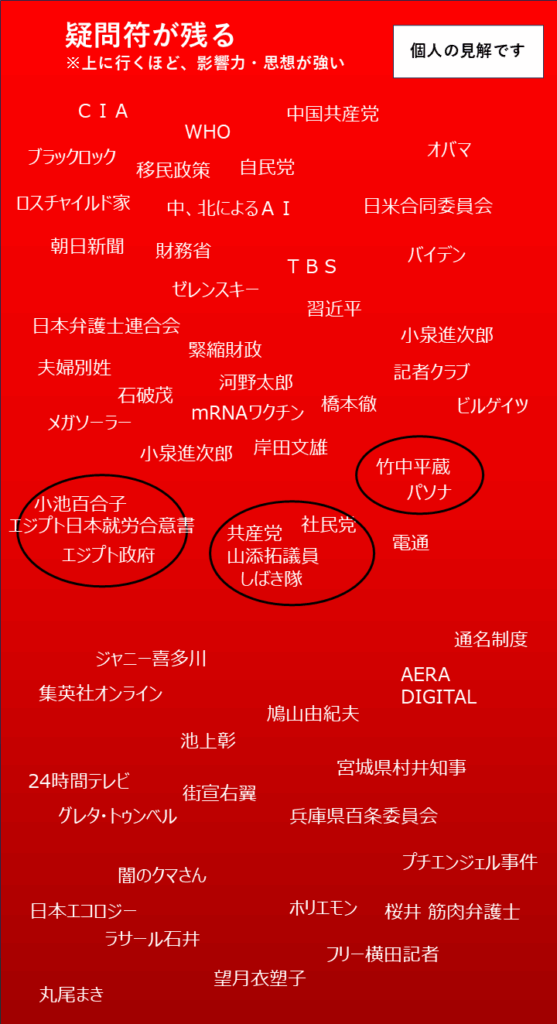学歴詐称、東京都税金消費、都庁マッピング、エジプト人労働合意、都議会言論弾圧、電通仲良し都議。