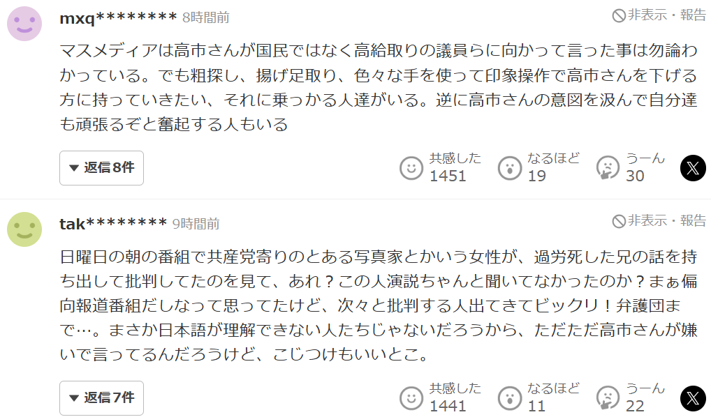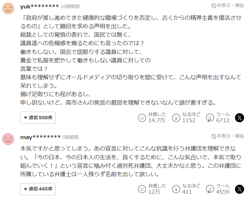 国民の意見はこちら↓右下の「共感した」の数に注目